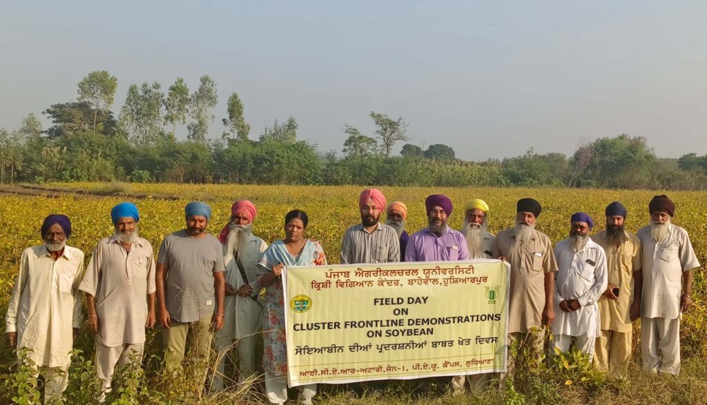 (Rajinder Kumar) ਹੁਸ਼ਿਆਰਪਰ, 31 ਅਕਤੂਬਰ 2025: ਕਿਸਾਨਾਂ ਨੂੰ ਸੋਇਆਬੀਨ ਦੀ ਸਫਲ ਕਾਸ਼ਤ ਸਬੰਧੀ ਜਾਣਕਾਰੀ ਦੇਣ ਲਈ ਅਤੇ ਖੇਤੀ ਪ੍ਰਦਰਸ਼ਨੀਆਂ ਰਾਂਹੀ ਇਸ ਦੇ ਪਸਾਰ ਲਈ ਪੰਜਾਬ ਖੇਤੀਬਾੜੀ ਯੂਨੀਵਰਸਿਟੀ, ਲੁਧਿਆਣਾ ਦੇ ਜ਼ਿਲ੍ਹਾ ਪੱਧਰੀ ਪਸਾਰ ਅਦਾਰੇ ਕ੍ਰਿਸ਼ੀ ਵਿਗਿਆਨ ਕੇਂਦਰ, ਬਾਹੋਵਾਲ ਵੱਲੋਂ ਮਾਹਿਲਪੁਰ ਬਲਾਕ ਦੇ ਪਿੰਡ ਸਾਰੰਗਵਾਲ ਵਿਖੇ ਸੋਇਆਬੀਨ ਦੀ ਕਾਸ਼ਤ ਬਾਬਤ ਖੇਤ ਦਿਵਸ ਮਨਾਇਆ ਗਿਆ।