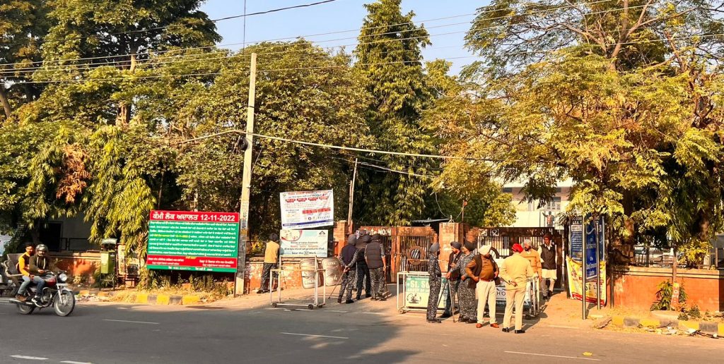 ਜਲੰਧਰ, 27 ਨਵੰਬਰ 2022 : ਆਪਣੀਆਂ ਮੰਗਾਂ ਦੇ ਹੱਕ ਵਿੱਚ ਕਿਸਾਨਾਂ ਨੇ ਸ਼ਨੀਵਾਰ ਰਾਤ ਨੂੰ ਜ਼ਿਲ੍ਹਾ ਪ੍ਰਬੰਧਕੀ ਕੰਪਲੈਕਸ ਵਿੱਚ ਵੜ ਗਏ ਤੇ ਧਰਨਾ ਸ਼ੁਰੂ ਕਰ ਦਿੱਤਾ, ਜਿਸ ਨਾਲ ਪ੍ਰਸ਼ਾਸਨ ਨੂੰ ਭਾਰੀ ਨਮੋਸ਼ੀ ਦਾ ਸਾਹਮਣਾ ਕਰਨਾ ਪਿਆ।