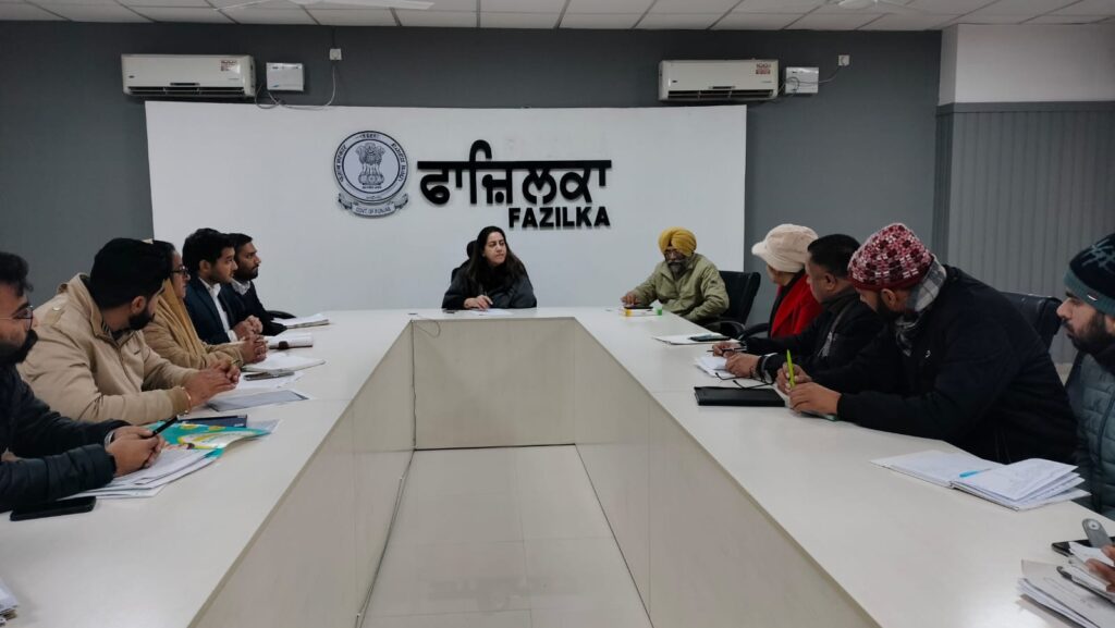ਫਾਜ਼ਿਲਕਾ , 25 ਜਨਵਰੀ | ਡਿਪਟੀ ਕਮਿਸ਼ਨਰ ਡਾ. ਸੇਨੂ ਦੁੱਗਲ ਆਈ.ਏ.ਐੱਸ ਨੇ ਮਗਨਰੇਗਾ, ਸਵੱਛ ਭਾਰਤ ਮਿਸ਼ਨ, ਸੋਲੀਡ ਵੇਸਟ ਤੇ ਲਿਕੁਇਡ ਵੇਸਟ ਮੈਨੇਜਮੈਂਟ ਆਦਿ ਵੱਖ-ਵੱਖ ਸਕੀਮਾਂ ਅਧੀਨ ਚੱਲ ਰਹੇ ਤੇ ਨਵੇਂ ਹੋਣ ਵਾਲੇ ਵਿਕਾਸ ਕੰਮਾਂ ਸਬੰਧੀ ਅਧਿਕਾਰੀਆਂ ਨਾਲ ਸਮੀਖਿਆ ਮੀਟਿੰਗ ਕੀਤੀ।
