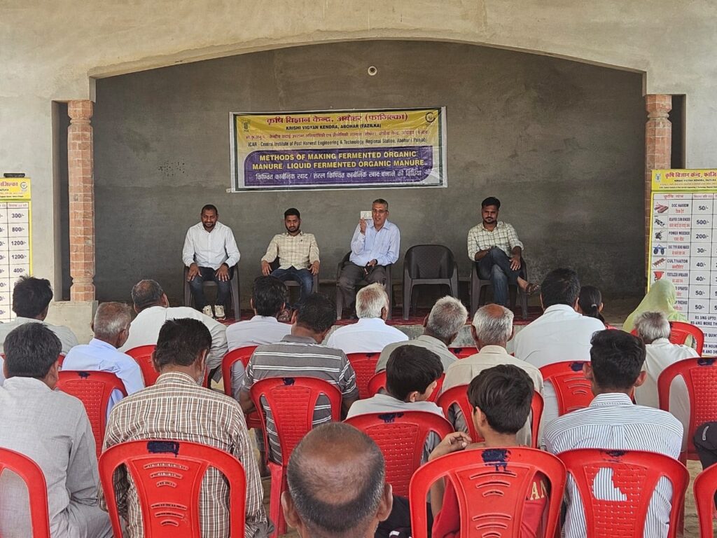 (Krishna raja) ਫਾਜ਼ਿਲਕਾ, 2 ਅਪ੍ਰੈਲ 2025: ਫਾਜ਼ਿਲਕਾ ਜ਼ਿਲ੍ਹੇ ਦੇ ਪਿੰਡ ਕਿੱਕਰ ਖੇੜਾ ਵਿਖੇ ਕੇ ਵੀ ਕੇ ਫਾਜ਼ਿਲਕਾ, ਆਈ ਸੀ ਏ ਆਰ ਸਿਫੇਟ ਆਰ ਐਸ ਅਬੋਹਰ ਦੁਆਰਾ ਫਰਮੈਂਟੇਡ ਜੈਵਿਕ ਖਾਦ / ਤਰਲ ਫਰਮੈਂਟੇਡ ਜੈਵਿਕ ਖਾਦ ਬਾਰੇ ਜਾਗਰੂਕਤਾ ਪ੍ਰੋਗਰਾਮ ਆਯੋਜਿਤ ਕੀਤਾ ਗਿਆ। ਇਹ ਪ੍ਰੋਗਰਾਮ ਕੇਵੀਕੇ ਫਾਜ਼ਿਲਕਾ ਦੇ ਪ੍ਰਿੰਸੀਪਲ ਅਰਵਿੰਦ ਕੁਮਾਰ ਅਹਿਲਾਵਤ ਦੀ ਅਗਵਾਈ ਹੇਠ ਡਾ. ਪ੍ਰਕਾਸ਼ ਚੰਦ ਗੁਰਜਰ ਦੁਆਰਾ ਆਯੋਜਿਤ ਕੀਤਾ ਗਿਆ ਸੀ।