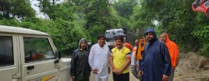 (Rajinder Kumar) ਹੁਸ਼ਿਆਰਪੁਰ, 1 ਸਤੰਬਰ 2025: ਭਾਰੀ ਬਾਰਿਸ਼ ਕਾਰਨ ਹੁਸ਼ਿਆਰਪੁਰ-ਊਨਾ ਸੜਕ ‘ਤੇ ਪਿੰਡ ਚੱਕ ਸਾਧੂ ਨੇੜੇ ਅਚਾਨਕ ਜ਼ਮੀਨ ਖਿਸਕਣ ਕਾਰਨ ਸੜਕ ਪੂਰੀ ਤਰ੍ਹਾਂ ਬੰਦ ਹੋ ਗਈ। ਸੂਚਨਾ ਮਿਲਦੇ ਹੀ ਵਿਧਾਇਕ ਬ੍ਰਮ ਸ਼ੰਕਰ ਜਿੰਪਾ ਮੌਕੇ ‘ਤੇ ਪਹੁੰਚੇ ਅਤੇ ਸਥਿਤੀ ਦਾ ਜਾਇਜ਼ਾ ਲਿਆ। ਤੁਰੰਤ ਕਾਰਵਾਈ ਕਰਦੇ ਹੋਏ ਉਨ੍ਹਾਂ ਨੇ ਸਿਵਲ ਡਿਫੈਂਸ ਟੀਮ ਅਤੇ ਸਥਾਨਕ ਸਮਾਜ ਸੇਵਕਾਂ ਦੀ ਮਦਦ ਨਾਲ ਸੜਕ ਨੂੰ ਸਾਫ਼ ਕਰਨ ਦੀਆਂ ਕੋਸ਼ਿਸ਼ਾਂ ਸ਼ੁਰੂ ਕਰ ਦਿੱਤੀਆਂ।