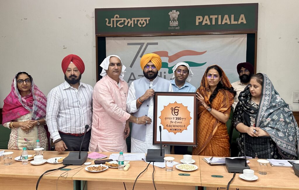ਕੈਬਨਿਟ ਮੰਤਰੀ ਸ਼ਹੀਦੀ ਸ਼ਤਾਬਦੀ ਨੂੰ ਸਮਰਪਿਤ ਪਟਿਆਲਾ ਵਿਖੇ ਹੋਣ ਵਾਲੇ ਸਮਾਗਮਾਂ ਅਤੇ ਵਿਸ਼ੇਸ਼ ਨਗਰ ਕੀਰਤਨ ਦੇ ਰੂਪ ‘ਚ 21 ਨਵੰਬਰ ਨੂੰ ਪਟਿਆਲਾ ਪੁੱਜਣ ਵਾਲੀ ਧਾਰਮਿਕ ਯਾਤਰਾ ਲਈ ਕੀਤੇ ਜਾ ਰਹੇ ਪ੍ਰਬੰਧਾਂ ਜਾਇਜ਼ਾ ਲੈਣ ਲਈ ਤਿਆਰੀਆਂ ਦਾ ਜਾਇਜ਼ਾ ਲੈਣ ਪੁੱਜੇ ਹੋਏ ਸਨ। ਇਸ ਮੌਕੇ ਕੈਬਨਿਟ ਮੰਤਰੀ ਨੇ ਪੰਜਾਬ ਸਰਕਾਰ ਵੱਲੋਂ ਜਾਰੀ ਕੀਤਾ ਸ੍ਰੀ ਗੁਰੂ ਤੇਗ ਬਹਾਦਰ ਜੀ ਦੀ ਲਾਸਾਨੀ ਸ਼ਹਾਦਤ ਦੇ 350 ਸਾਲਾ ਸਮਾਗਮਾਂ ਦਾ ਲੋਗੋ ਡਿਪਟੀ ਕਮਿਸ਼ਨਰ ਡਾ. ਪ੍ਰੀਤੀ ਯਾਦਵ ਨੂੰ ਸੌਂਪਿਆ।